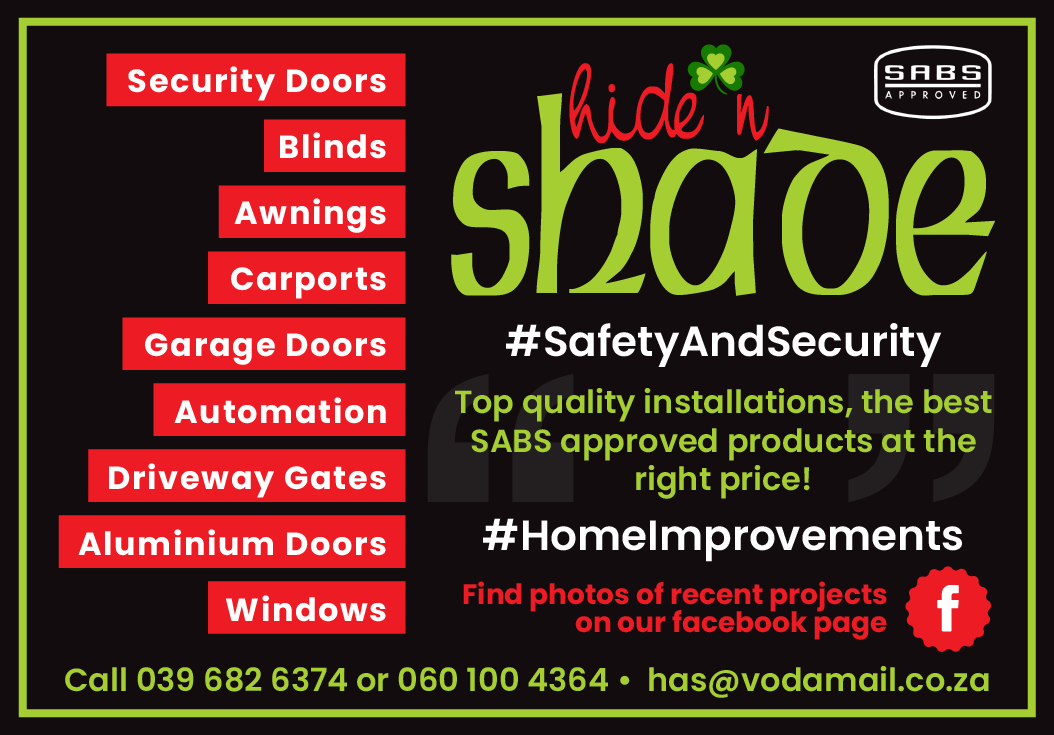 Selvin & Roshnee Naidoo are the sole owners of Hide ‘n Shade since 2012 with Selvin being in the awning business since a very young age. They ensure customer service excellence at all times and they offer the best products available and keep up to date with the constantly changing products and improvements available. They are a professional local KZN South Coast company based in Port Shepstone and they specialise in a selection of Blinds, Awnings, Carports, Patio Structures, Adjustable Louvre Patio’s, Security & Garage Doors and also Gate Automation with Remote Control & Access control.